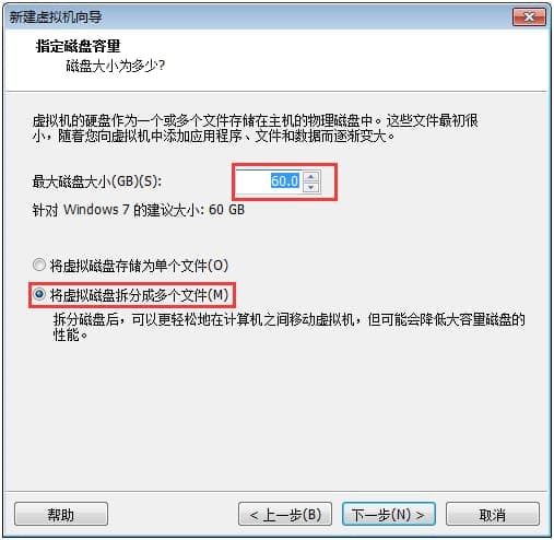 设置硬盘大小,一般按照默认设置来,也可以加大一点,看个人的需求,下面的选择第二个,方便我们等会分区,然后点击下一步。