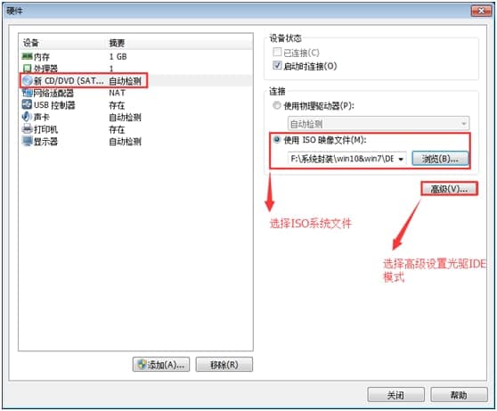 注:我们在用VM12版本时,默认选择ISO文件,无法正常安装GHOST系统,主要原因就是光驱动不是为IDE模式,这里一定记得选择。