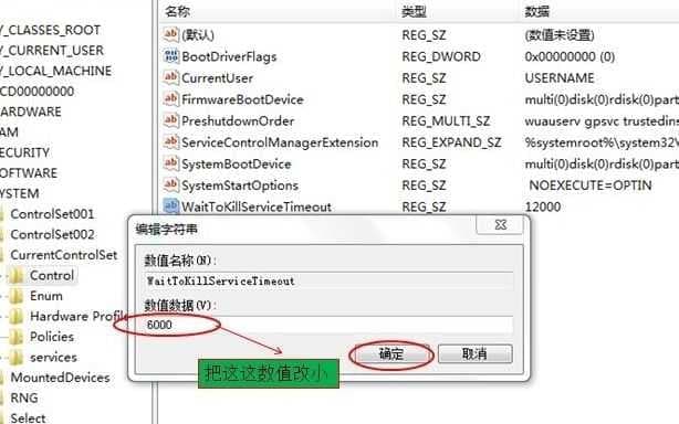 双击这个选项,把默认数值是12000(代表12秒改为更小,比如改成6000,如图;