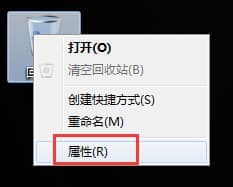 1.首先,桌面上找到回收站图标并右键点击,在弹出来的下滑菜单中,咱们选择属性选项。