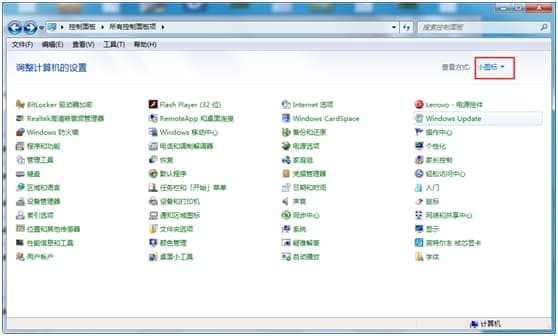2,查看方式更改为”小图标”,如下图所示;