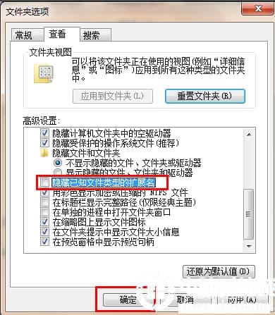 以上就是win7系统关闭“隐藏已知文件类型的扩展名”的步骤了,大家可以尝试一下。