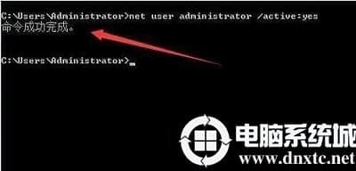3、输入net user administrator /active:yes,回车。