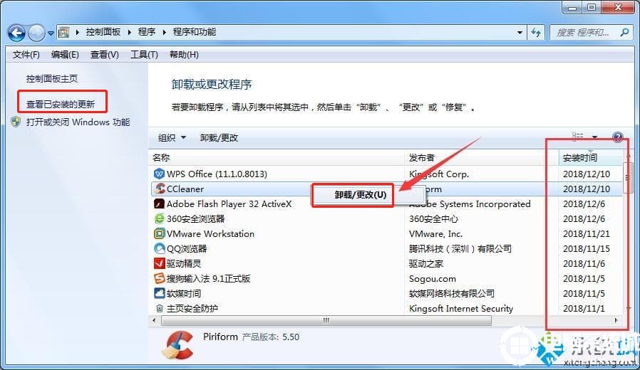 4.此时点击左侧的“查看已安装的更新”,右键选中最近安装后引起电脑蓝屏的程序并点击“卸载”即可。