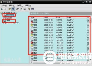 2.此时电脑会打开事件查看器界面,此时要注意检查系统日志和应用程序中出现的错误项。