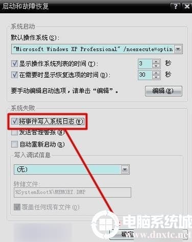3.依次选择“控制面板-系统-高级-启动和故障修复-系统失败”,最后勾选“将事件写入系统日志”复选框,最后点击“确定”即可。