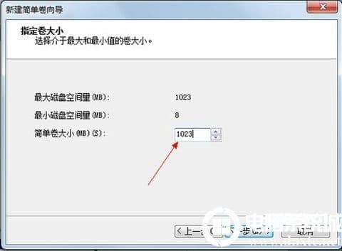 10、打开新建简单卷向导,一路下一步,在简单卷大小里填写要新建磁盘的大小,下一步。