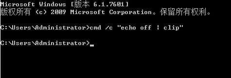 2、在打开的命令指示符窗口中,复制代码cmd /c “echo off | clip”,回车即可。