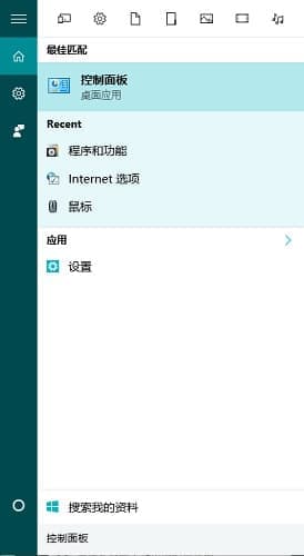 点击Cortana或按下Windows+S,输入“控制面板”甚至是拼音,系统就会自动找到控制面板了。
