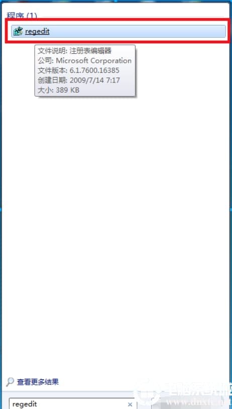 1,如果说屏幕分辨率没有问题,那么就是注册表的事了。首先点击开始——搜索”regedit“——点击regedit。