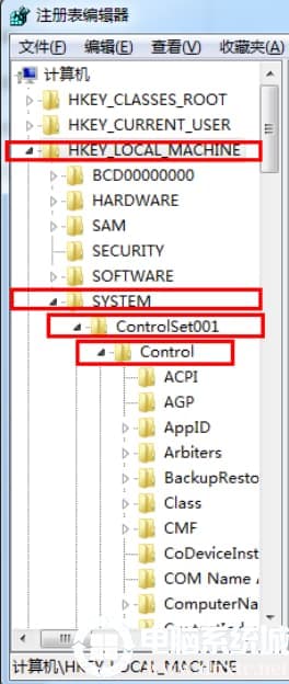 2,打开后依次选择HEKY_LOCAL_MACHINE——SYSTEM——ControlSet001——Control。