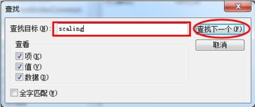 4,在configuration上右击选择查找,输入”scaling“,点击”查找下一个“。