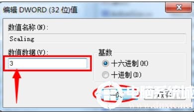 6,将数值数据由4改为3即可。(少数部分修改后没有游戏仍不能全屏,将3改4后看看能不能全屏,把游戏关闭后,再将4改为3)