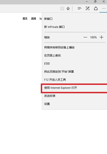 打开edge,点击右上角的“三点”按钮,然后点击“使用Internet Explorer 打开”。