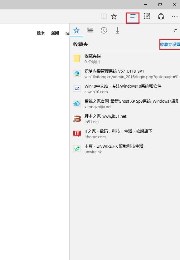 6.回到edge上,打开“收藏夹”,并进入“收藏夹设置”.
