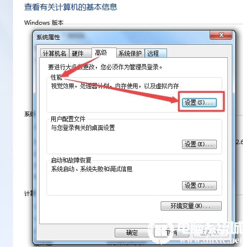 2、在打开的页面中点击左侧的高级系统设置选项,在弹出的页面中点击性能选项下面的设置按钮。