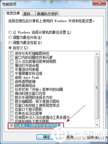 在计算机图标点击‘右键’,选择‘属性-性能和信息工具-调整视觉效果’,把‘在桌面上为图标标签使用阴影’的勾去掉。