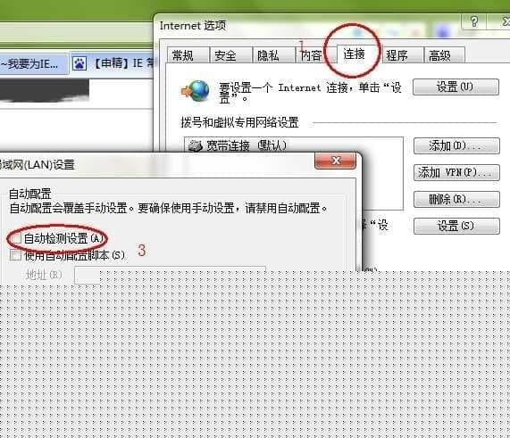 解决办法:ie下选择工具-internet选项-连接-局域网设置-取消自动检测