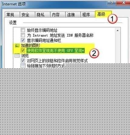 解决办法:工具-internet选项-高级-加速图形-使用软件而非GPU选择