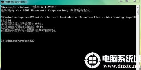 netsh wlan set hostednetwork mode=allow ssid=xiaoming key=18901234
