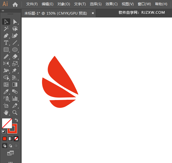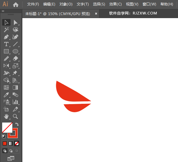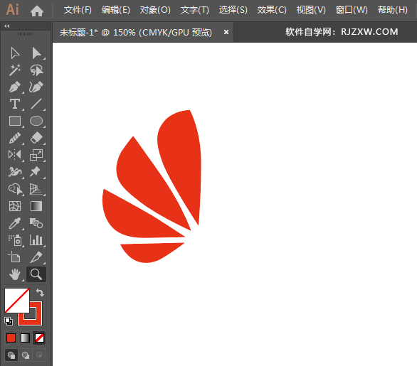第1步、打开AI软件,新建空白文档,绘制一个花瓣出来,效果如下: