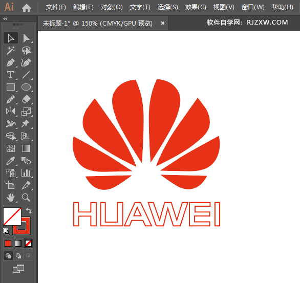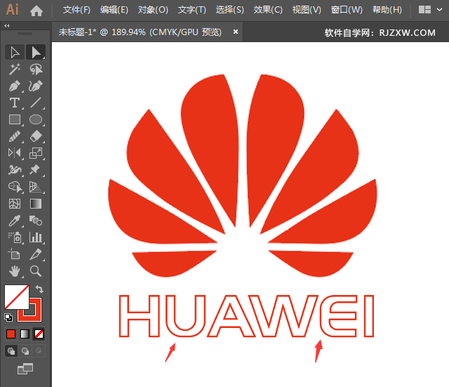 第6步、然后使用钢笔工具,绘制HUAWEI拼音出来,效果如下: