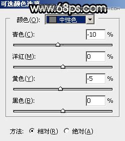 2、创建可选颜色调整图层,对黄、绿、白、中性色进行调整,参数设置如图5 - 8,效果如图9。这一步给图片增加橙黄色。