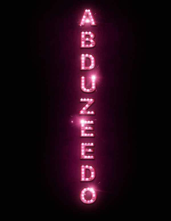 大致过程:打上文字后用图层样式做出简单的发光字效果,然后添加一些灯泡等素材装饰在文字中间,再渲染一下颜色即可。