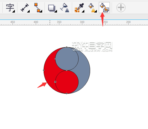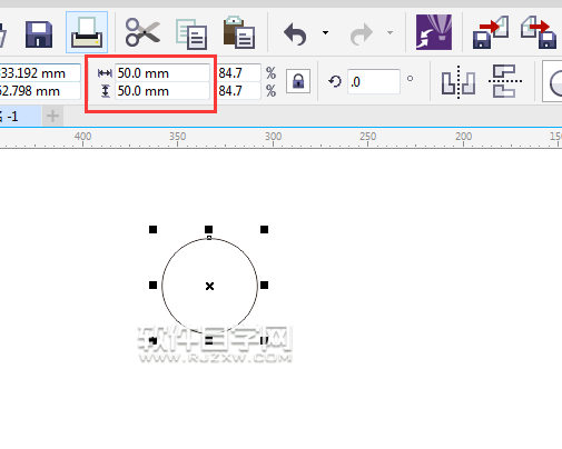 第2步、绘制一个正圆出来,在属性栏上面修改50x50MM大小出来。