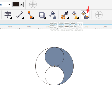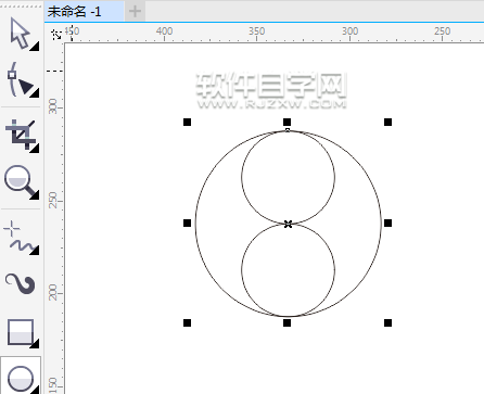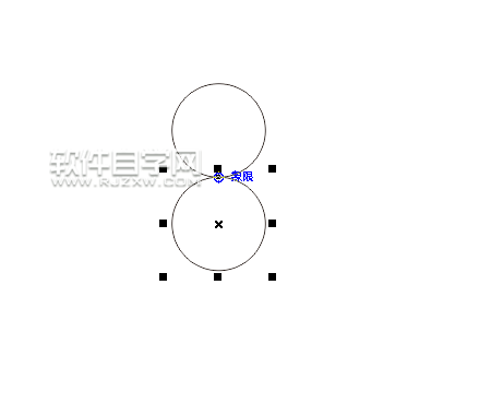 第4步、然后以二小圆中间,绘制一个大圆出来。效果如下: