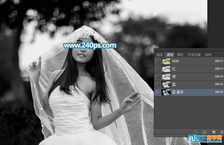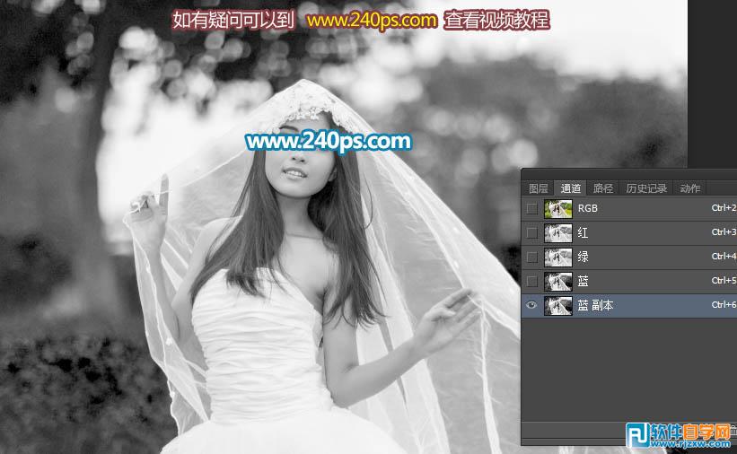 | 1、点击原图素材,打开素材大图,并把大图保存到本机。 打开PS软件,打开保存的素材图片;进入通道面板,把蓝色通道复制一份,得到蓝副本通道,如下图。 |