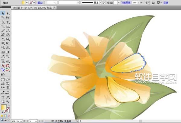 第2步、打开AI软件,绘制紫薇花的形状的树叶出来。