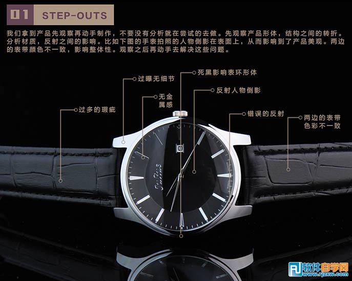 | 1、比如下图的手表拍照的人物倒影在表面上。从而影响到了产品美观。两边的表带颜色不一致,影响整体性。观察之后再动手去解决这些问题。 |