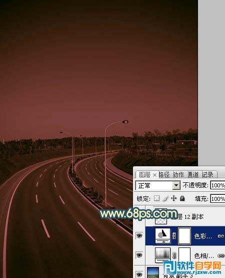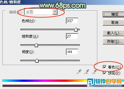 | 1、打开素材图片,先来调整主色。创建色相/饱和度调整图层,先勾选“着色”选项,然后调整数值,把整体转为暗红色,效果如图2。 |