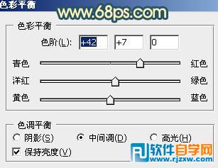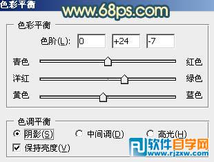 | 2、创建色彩平衡调整图层,对阴影,中间调进行调整,参数设置如图3,4,效果如图5。 |