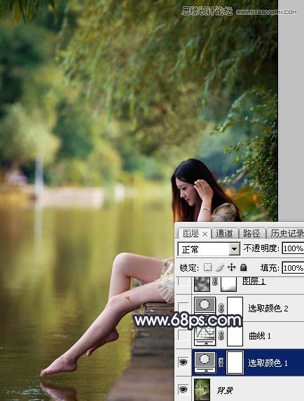 素材以绿色为主,的时候直接把主色转为秋季的橙黄色;然后把暗部调暗,并增加蓝色;再给图片局部渲染一些高光,增加层次感即可,
