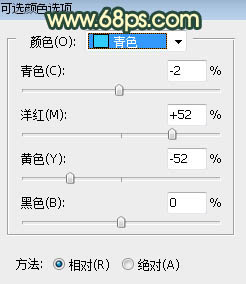 | 4、创建可选颜色调整图层,对黄色,青色进行调整,参数设置如图6,7,效果如图8。这一步同样给图片增加橙黄色,并把青色调暗一点。 |