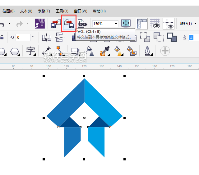 第1步、选中绘制好的图形,点击导出图标,或是按Ctrl+E。效果如下: