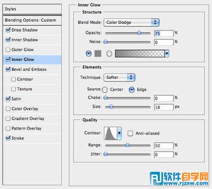 | 3、设置填充的不透明度为0%,开始在底部的文本层上应用这些图层效果。我们使用大量微妙的阴影,不同的混合模式和等高线使这个斜面发光。描边添加了一个很棒的边缘突出。大家要敢于尝试不同的设置和颜色。 |