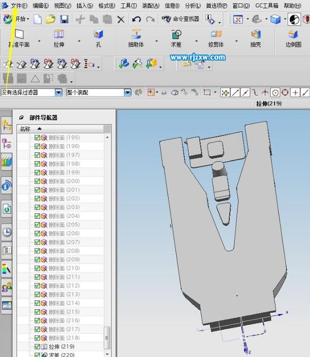 第1步、打开UG软件,绘制好图形,点击文件菜单。
