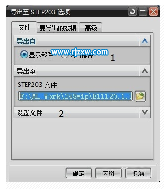 第3步、在导出到STEP203选项中,设置导出的路径。