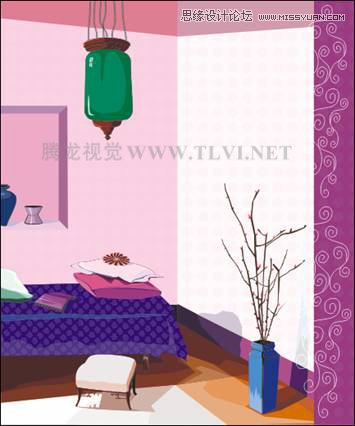 (7)将组成床的所有图形群组,然后参照绘制床图形的方法,在页面中绘制出其他家具图形以及吊灯图形,如图6-211所示。在这里读者可以打开本书附带光盘Chapter-06“家居装饰.cdr”文件,然后复制相应图形到当前文档中即可。