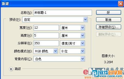 | 1、新建一个宽度为12厘米,高度为5厘米,分辨率为350像素的文件,如图1所示 |