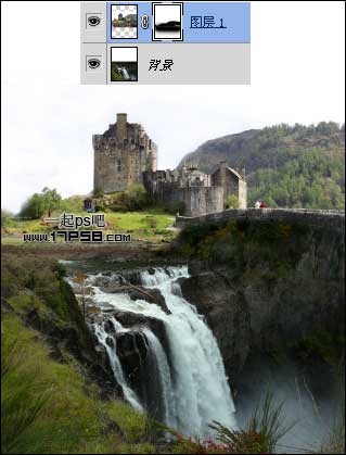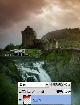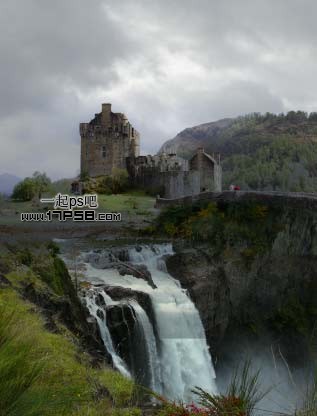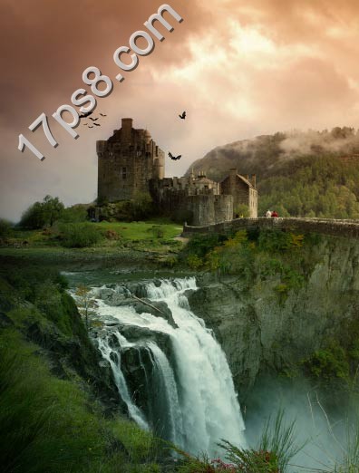 本更多的是介绍如何溶图。作者用到了三幅素材:城堡、瀑布和天空。处理的时候需要把三幅图片完美的融合起来,可以用蒙版等来控制过渡部分。溶图后再渲染一下颜色和高光即可。最终效果