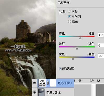 十、图像合成基本完事了,下面就是和增加一些修饰,添加色彩平衡调整层。
