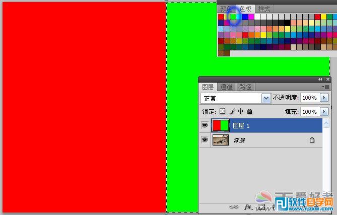 | 3、ctrl+shift+I反选,填充绿色。 |