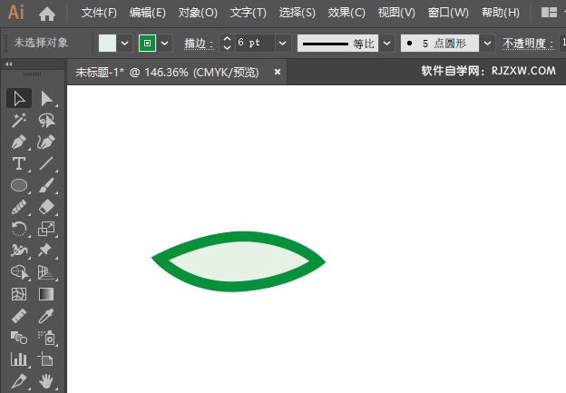 1、打开AI软件,绘制一个树叶出来,效果如下: