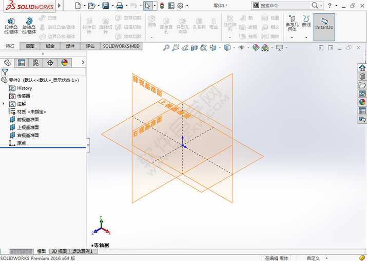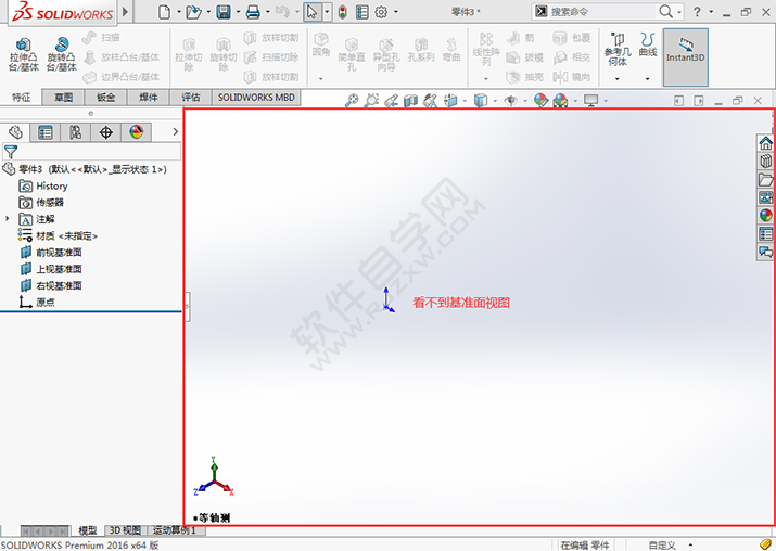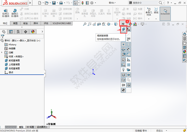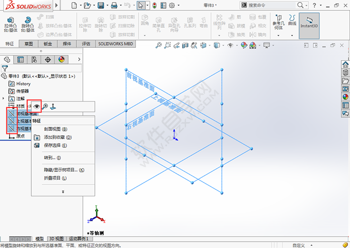 4、然后在左边的基准面,也可以右击,点击眼睛图标。