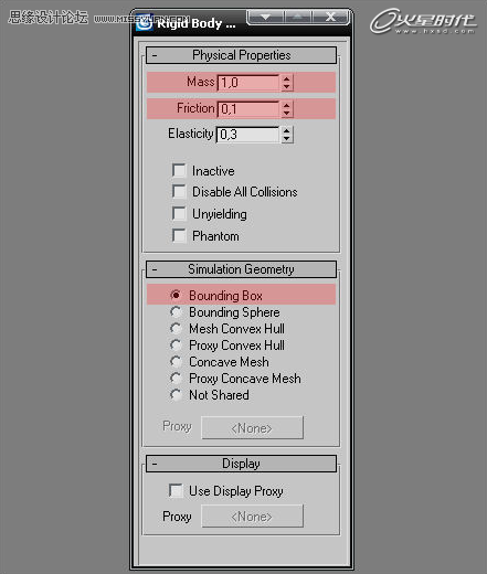 3、选择长方体,打开属性编辑器,勾选Unyielding。(图10)