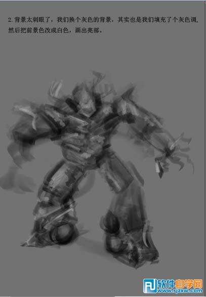 | 2、背景太刺眼了,我们换个灰色的背景,其实也是我们填充了个灰色调,然后把前景色改成白色,调出亮部。 |